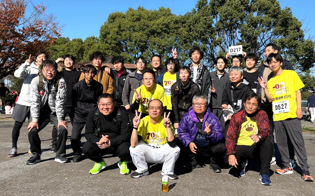 大会には総勢21名の役員・社員が参加し、20代から50代までの世代が青空の下交代でタスキをつなぎ、全員一丸となって42km完走を目指して力走しました。